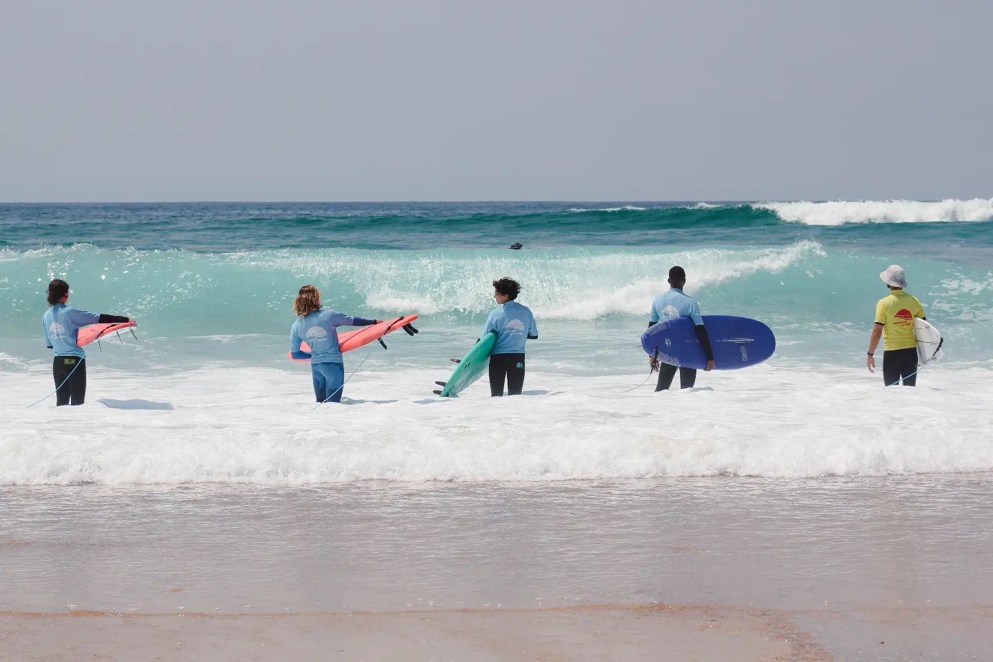 Cours de surf tous niveaux en anglais et en allemand. Planches et combinaisons mises à disposition gratuitement.