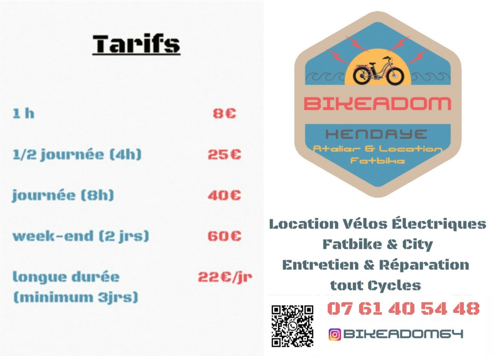 Situé à Hendaye Plage, juste derrière l'Office de Tourisme, Bikeadom vous propose de la location VAE (Vélos à Assistance Electrique), fun bikes et city bikes.