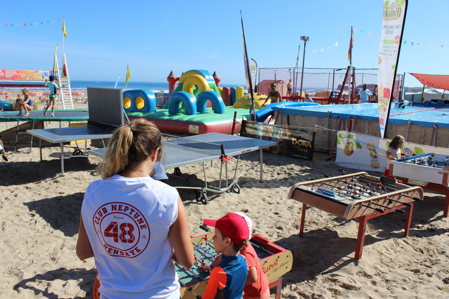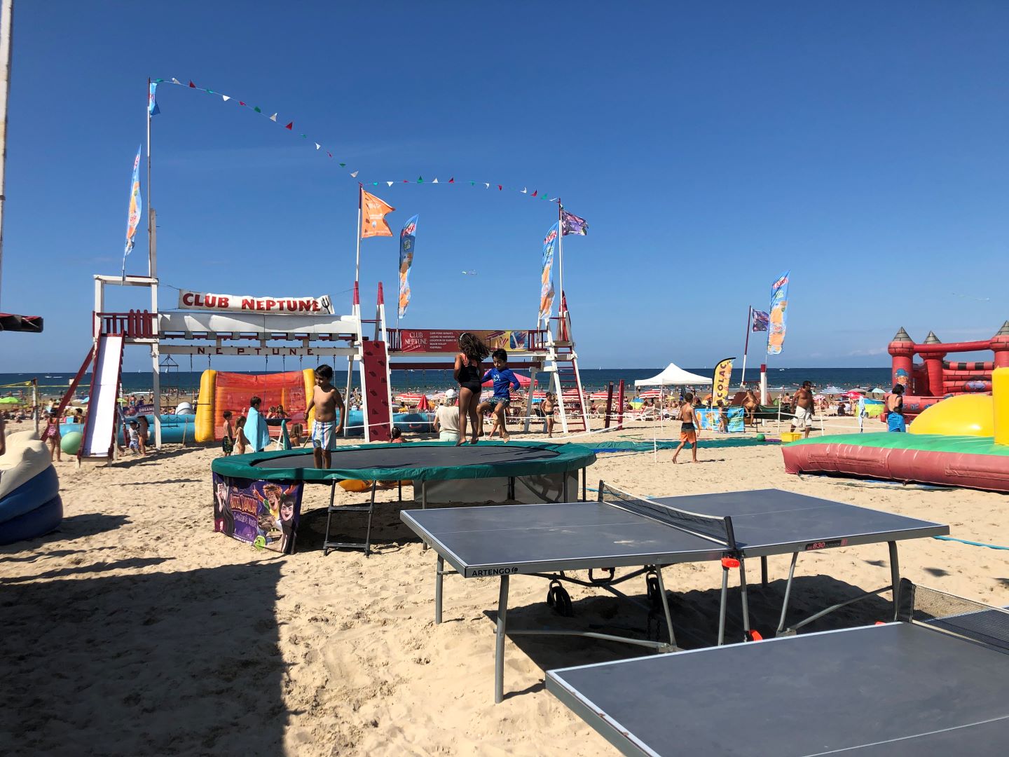 Venez profitez des structures gonflables, trampolines, baby foot, tennis de table, balançoires, beach-volley, football….