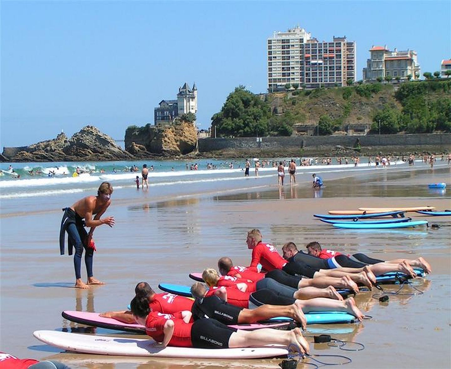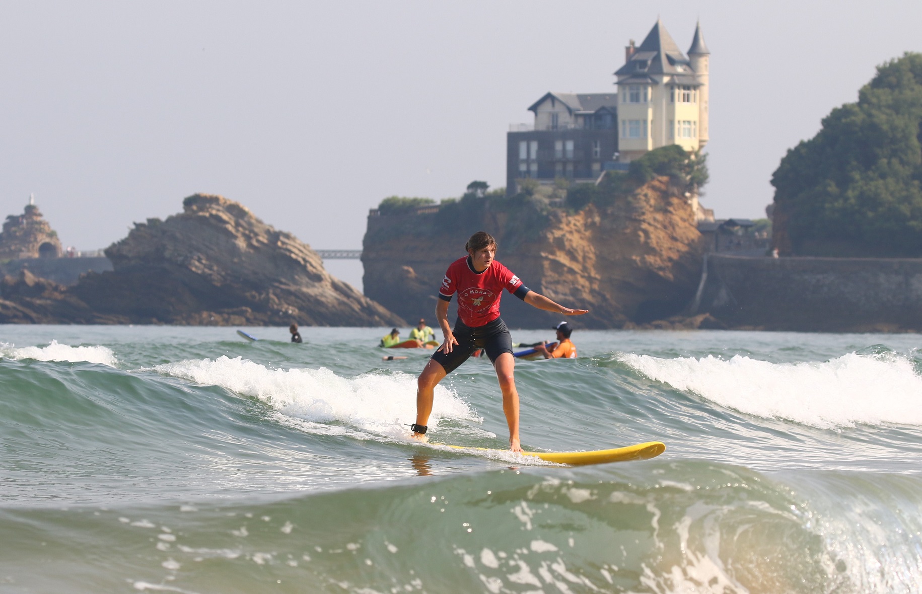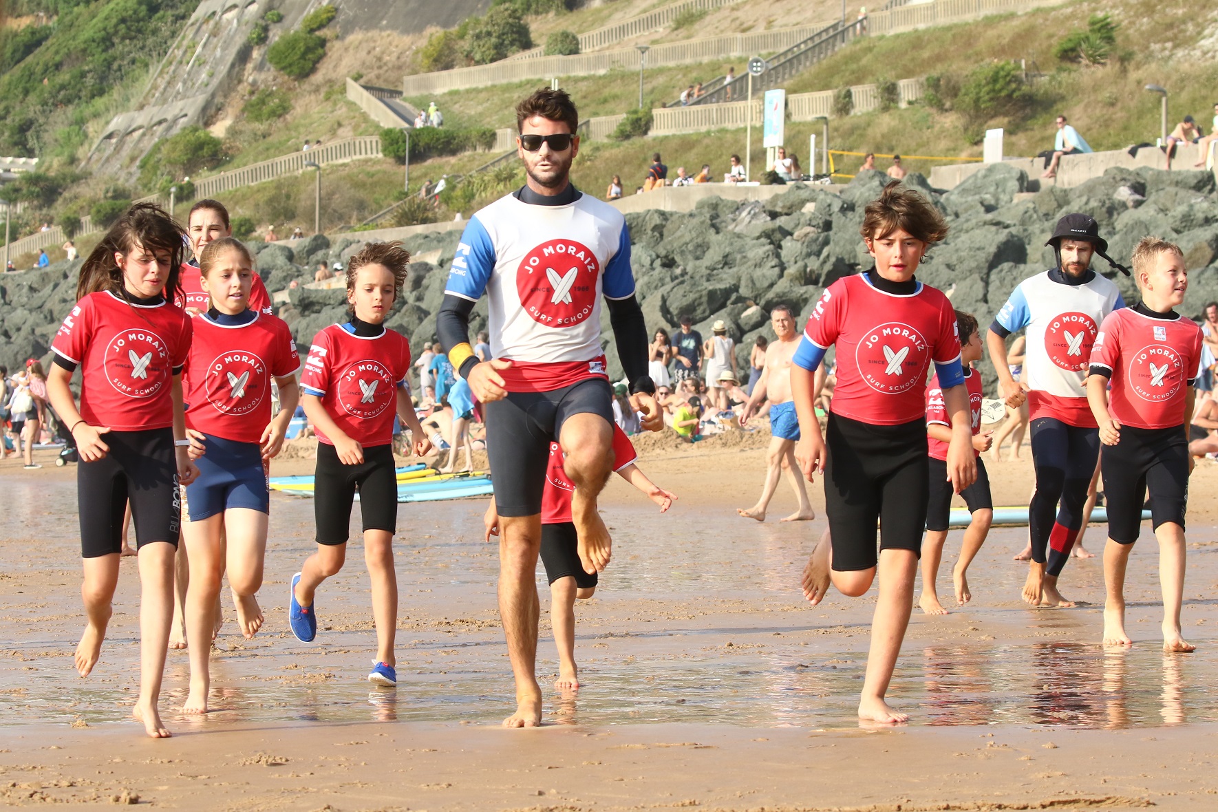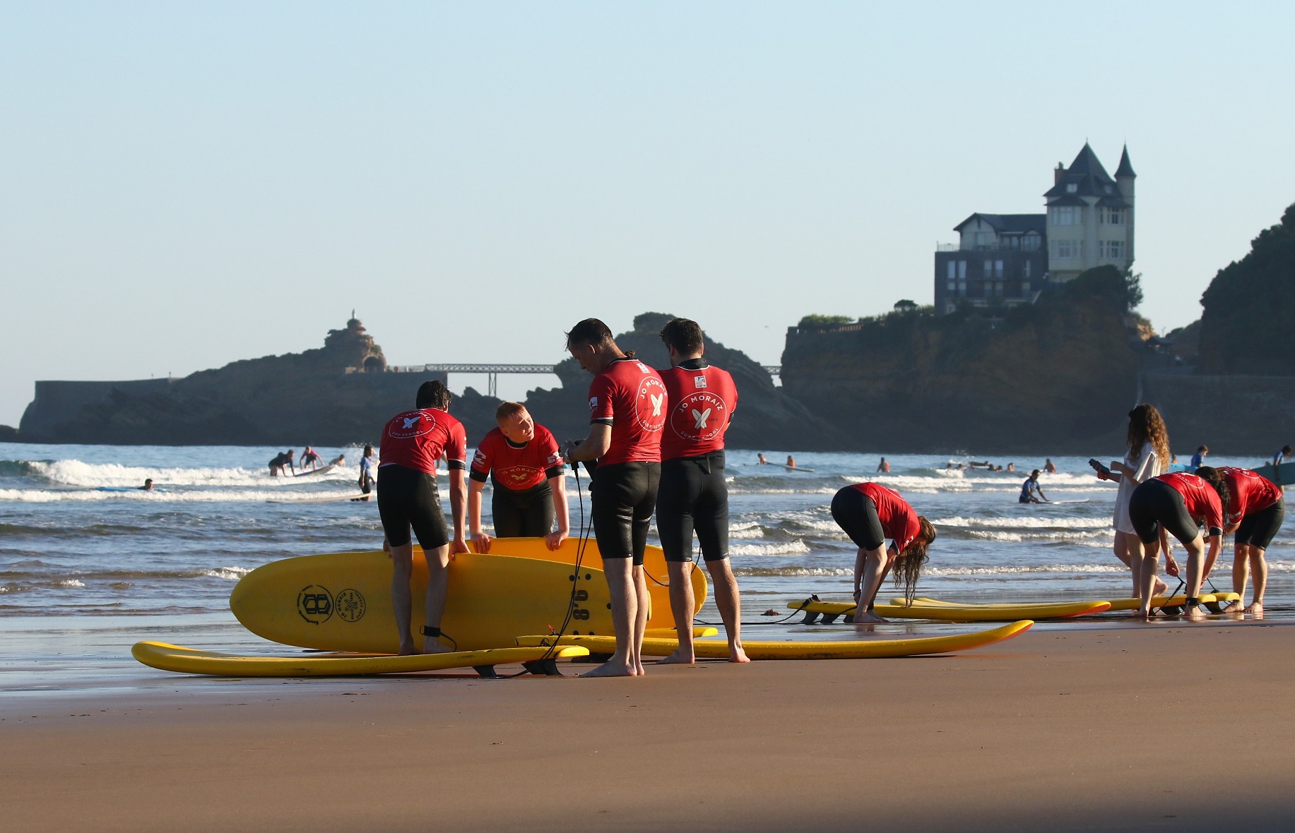 Depuis 1966, l'école de surf Jo Moraiz enseigne le surf sur la mythique plage de la Côte des Basques à Biarritz. Berceau du surf, cette plage au cadre exceptionnel est encadrée par des falaises, avec vue sur la côte espagnole et les montagnes.