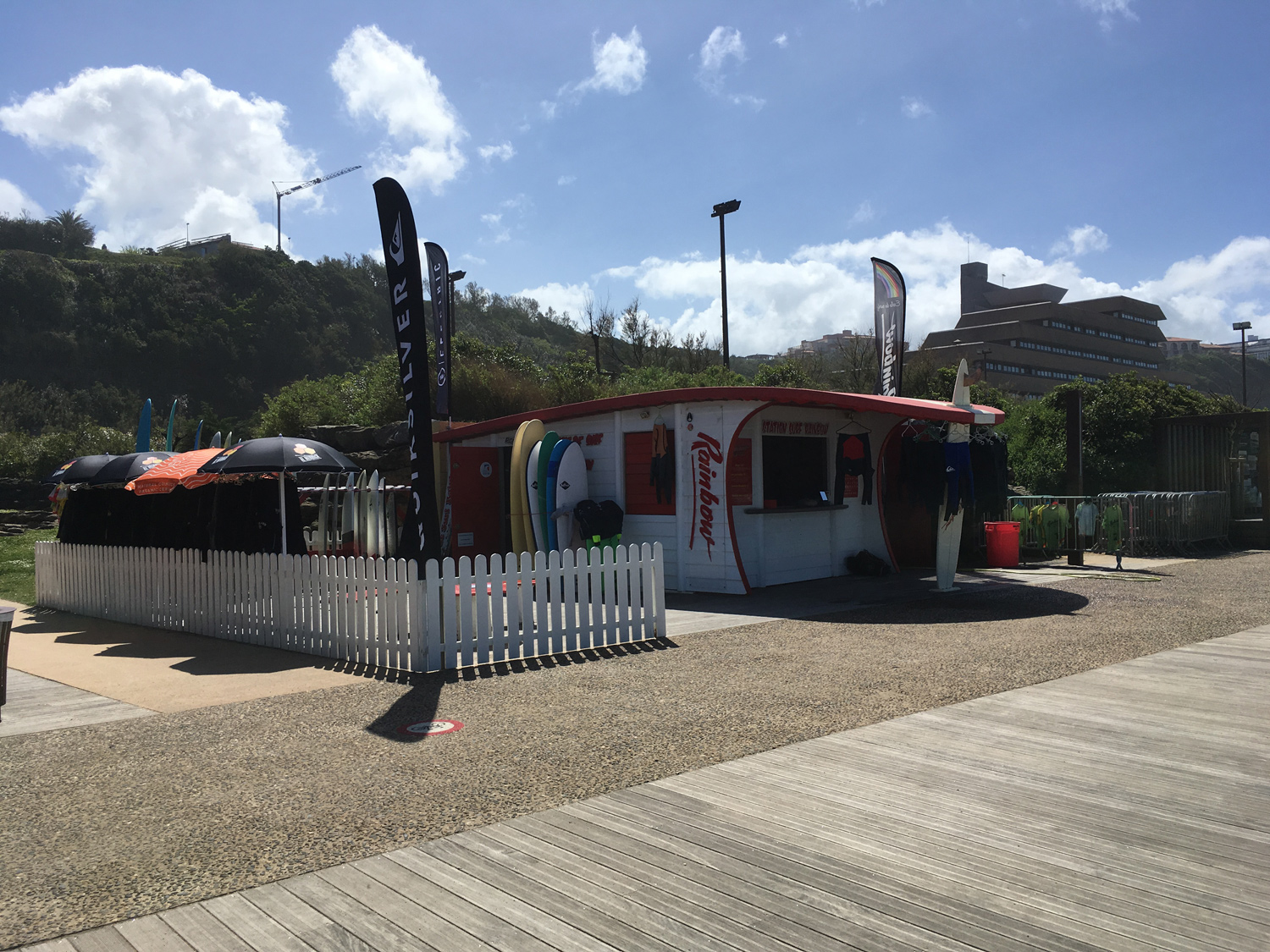 L'école de surf Rainbow, la plus ancienne école d’Anglet (depuis 1983), située sur la plage de la Petite Chambre d'Amour (VVF) à Anglet face à la mer, avec plus de 30 ans d'ancienneté et d'expérience. Elle bénéficie d'un cadre idéal avec une vue imprenable sur le phare de Biarritz. Nous vous accueillons au sein de notre cabane atypique (avec vestiaire) pour vous proposer en toute sécurité (moniteurs diplômés du brevet d'Etat) dans une ambiance chaleureuse, des cours de surf, des balades en Stand-Up Paddle quel que soit le niveau ainsi que de la location de matériel haut de gamme. Notre école est labelisée Ecole française de Surf et Handisurf (dispose d’un accès PMR) !
