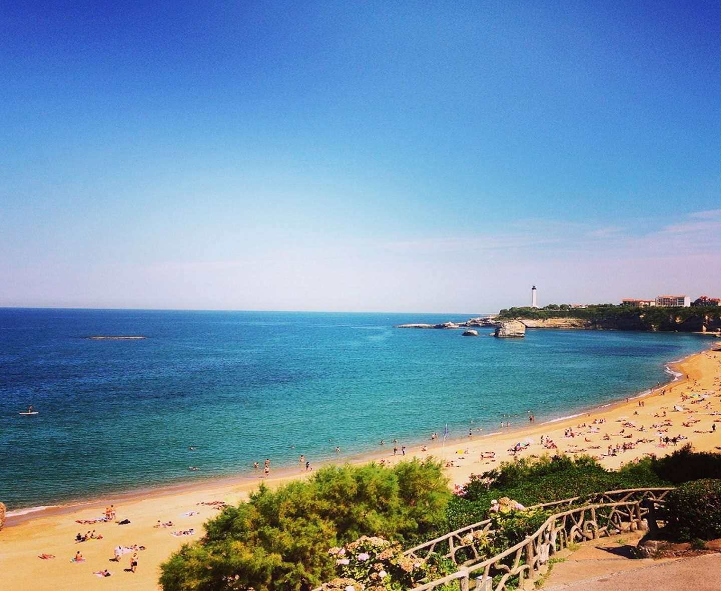 La grande plage une des plus grande plage de Biarritz , s’étend du nord au sud de la baie, entre l’Hôtel du Palais et le Bellevue. Au cœur de la ville, commerces, cafés et restaurants à proximité.