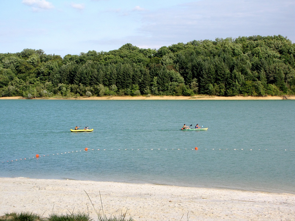 Plage et plan d'eau aménagé : baignade, pédalos, canoës, bar et restauration rapide en juillet et août de 13h à 19h.