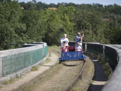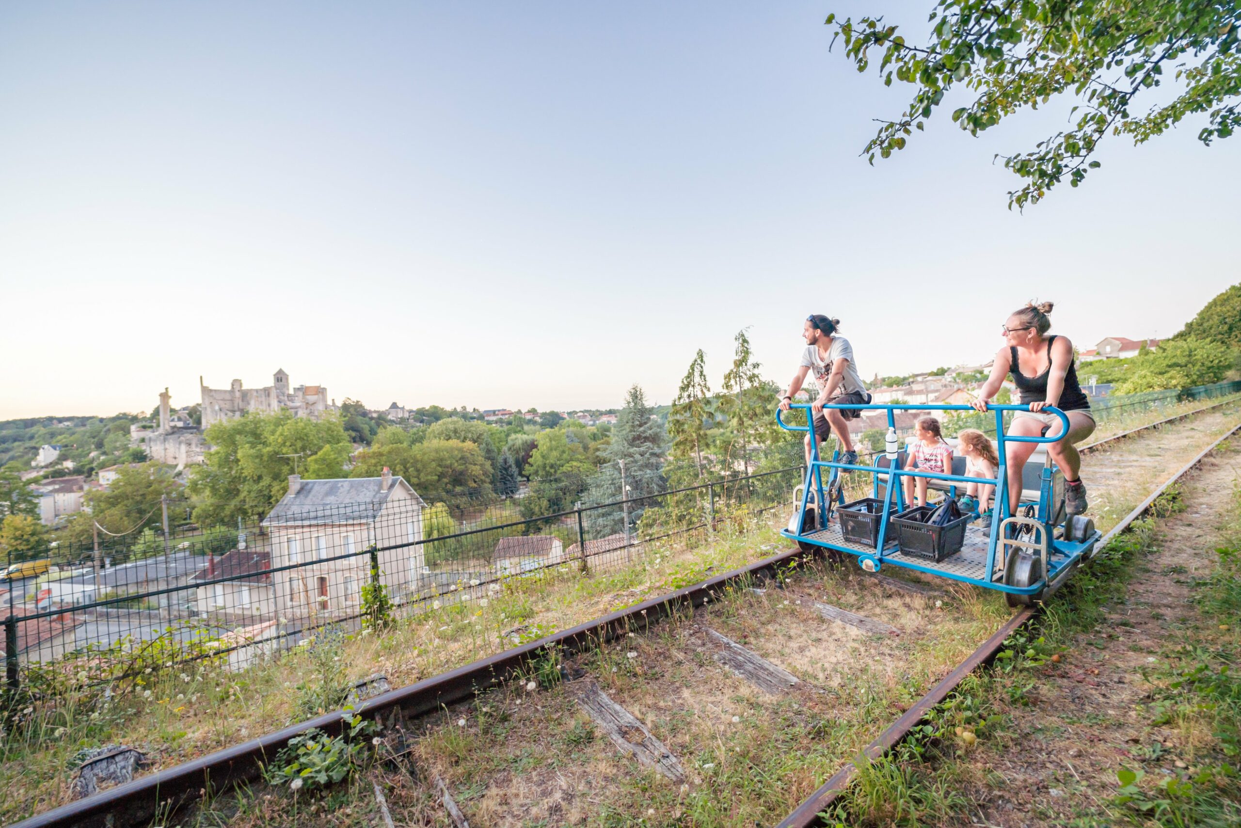 Plein est de Poitiers, la cité médiévale de Chauvigny mérite une visite. Et si celle-ci prenait la forme d'une balade en vélorail ? À deux, en famille ou entre amis, partez pour 17 km ou moitié moins (aller-retour), 1 à 2h à bord d'un engin insolite parcourant l'ancienne voie ferrée, servant autrefois notamment au transport des belles pierres des carrière du pays chauvinois.